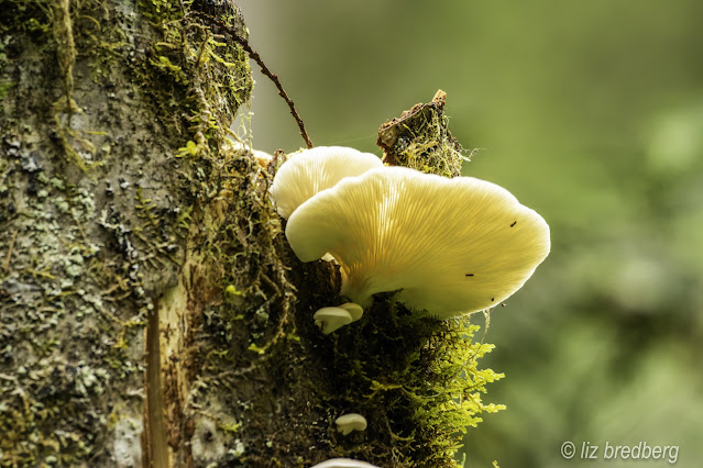Fewer than in autumn, fungi still remain abundant. The gilled oyster mushrooms call to mind the fan vault ceilings in gothic architecture.